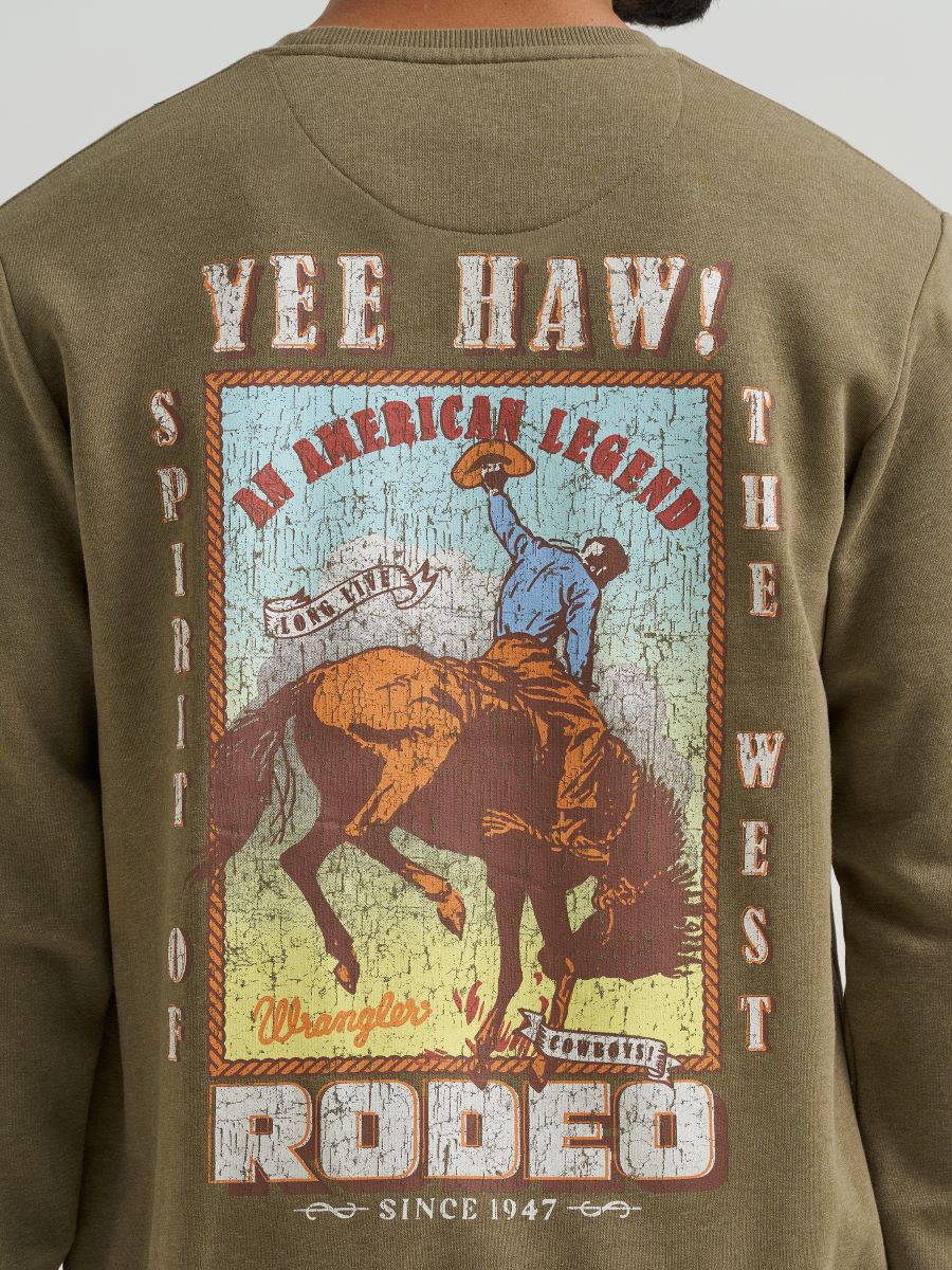 Olive 'Yee Haw' Crew Neck Men's Sweater by Wrangler®