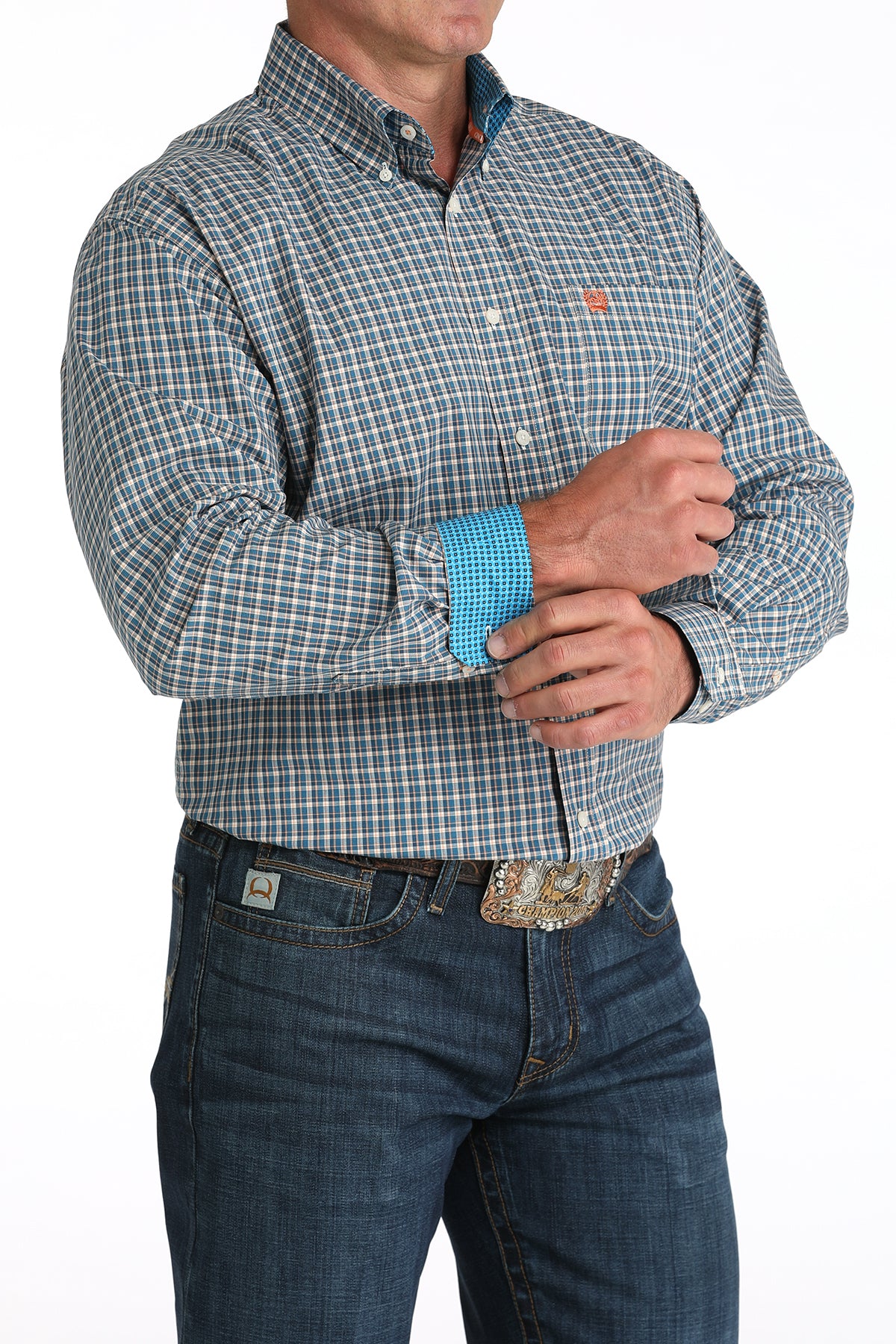Blue & Orange Plaid Classic Fit Men's Shirt by Cinch®