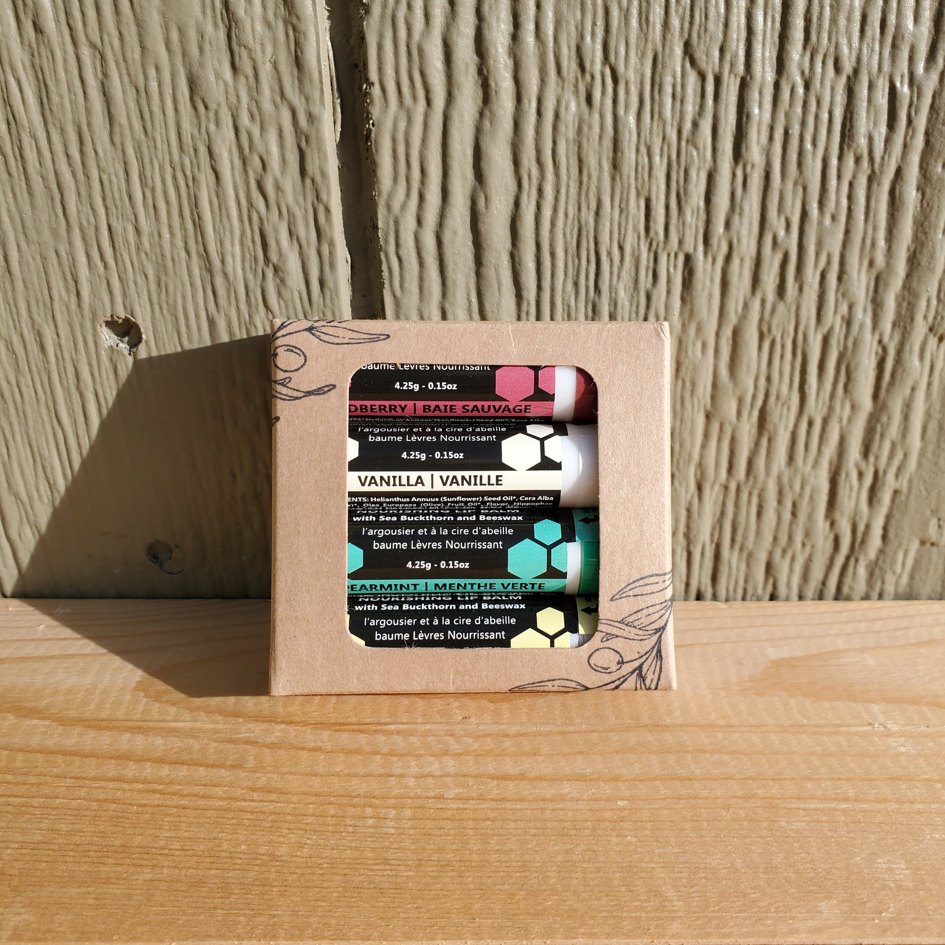 - Contains: 4 Lip Balms (Wildberry, Vanilla, Peppermint and Beeswax)
