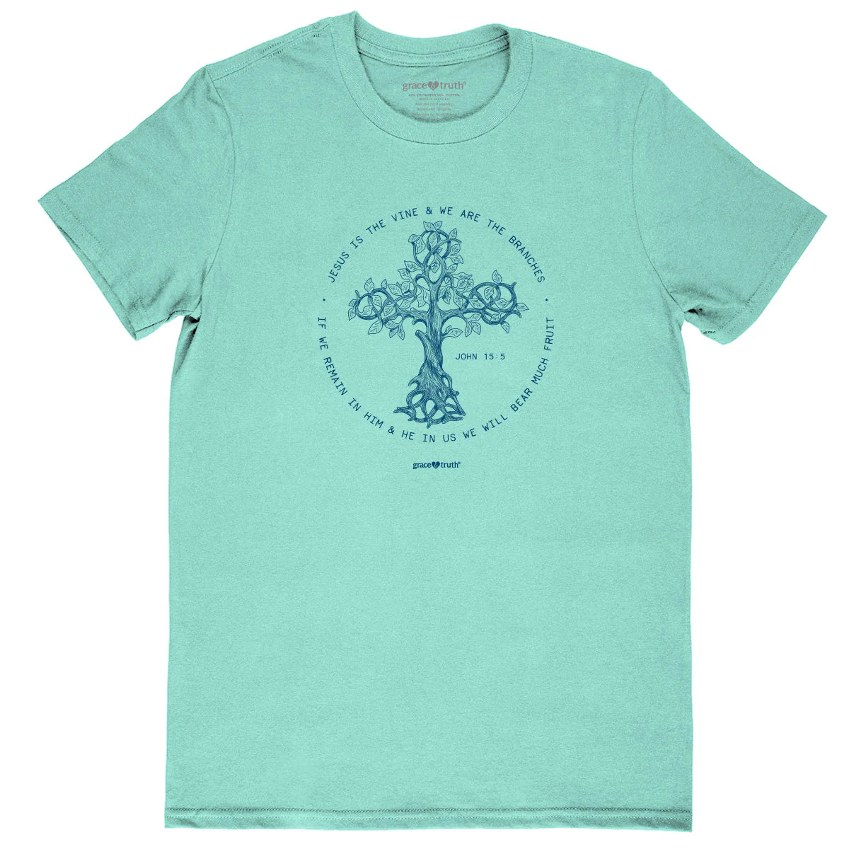 • Screen Print Art Work on Front: 'Jesus is the Vine & We are the Branches, If We Remain in Him & He in Us We Will Bear Much Fruit - John 15:5'